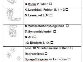 Ich hab nämlich gerade eine Igel- Werkstatt und da möchte ich Aufgaben in den Wochenplan reinnehmen, weiß aber nicht, ob das die Kinder durcheinander bringt.Habe nämlich sonst immer bei den Werkstätten einen Arbeitspass oder Arbeitsplan gehabt, bei dem die Kinder abhaken konnten, wenn sie eine Aufgabe gemacht haben.