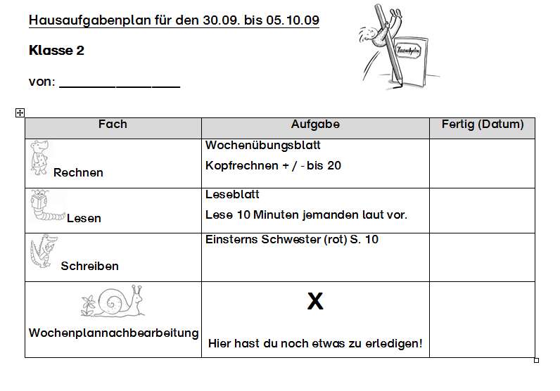 Müssen die Kinder die Aufgaben aus dem WP, die sie gemacht haben, selber abhaken?Das wären mal die ersten Fragen.