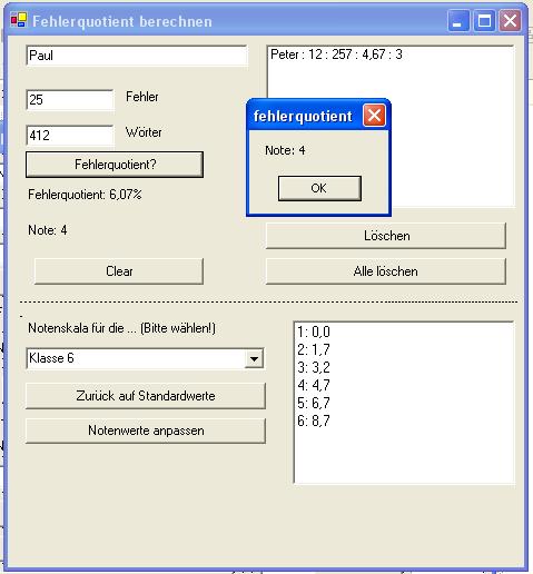 Rausgekommen ist ein Programm zur Berechnung von Fehlerquotienten. Für mich habe ich es für das Fach Deutsch geplant, da ich nicht weiß, ob die Fehlerquotienten in den Fremdsprachen ähnlich einfach berechnet werden.