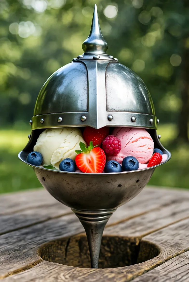 Wenn man Pickelhauben in Eisschränken vorkühlt und sie dann mit Speiseeis füllt, birgt das auch Gefahren!