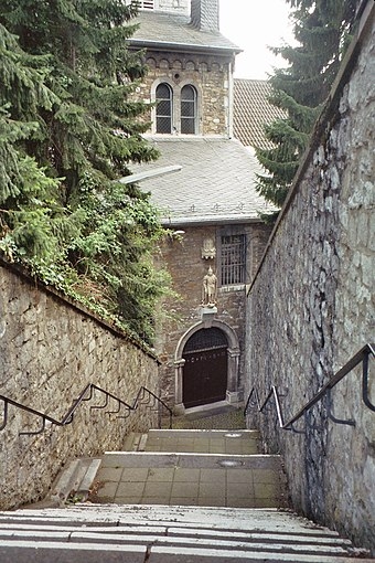 gardinenstange3.jpgÜber den Hintereingang der eingebundenen heutigen Pfarrkirche St. Lucia wacht der Hl. Georg: