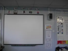 Wenn ihr es IM KLASSENRAUM habt (nicht im Medienraum), habt ihr noch zusätzlich eine andere Tafel/Whiteboard mit dran oder in der Klasse hängen?