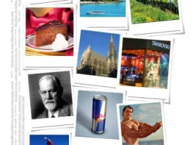 Das dafür verwendete Arbeitsblatt zeigt Impressionen, Produkte und Persönlichkeiten aus Österreich, die international bekannt sind.