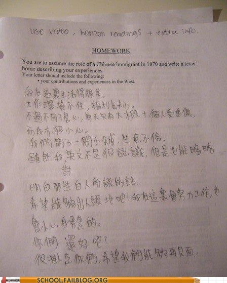 Wenn ich eine Fremdsprache unterrichte und den Schülern eine Schreibaufgabe, deren Instruktionen in der entsprechenden Zielsprache verfasst sind, gebe, erwarte ich schon ein Mindestmaß an Hausverstand - d.h. dass die Schüler die Aufgabe auch in der entsprechenden Zielsprache erledigen. Insbesondere auch deshalb, weil nach einer gewissen Zeit eine Routine entsteht, die ein derartiges Ergebnis verhindern sollte.