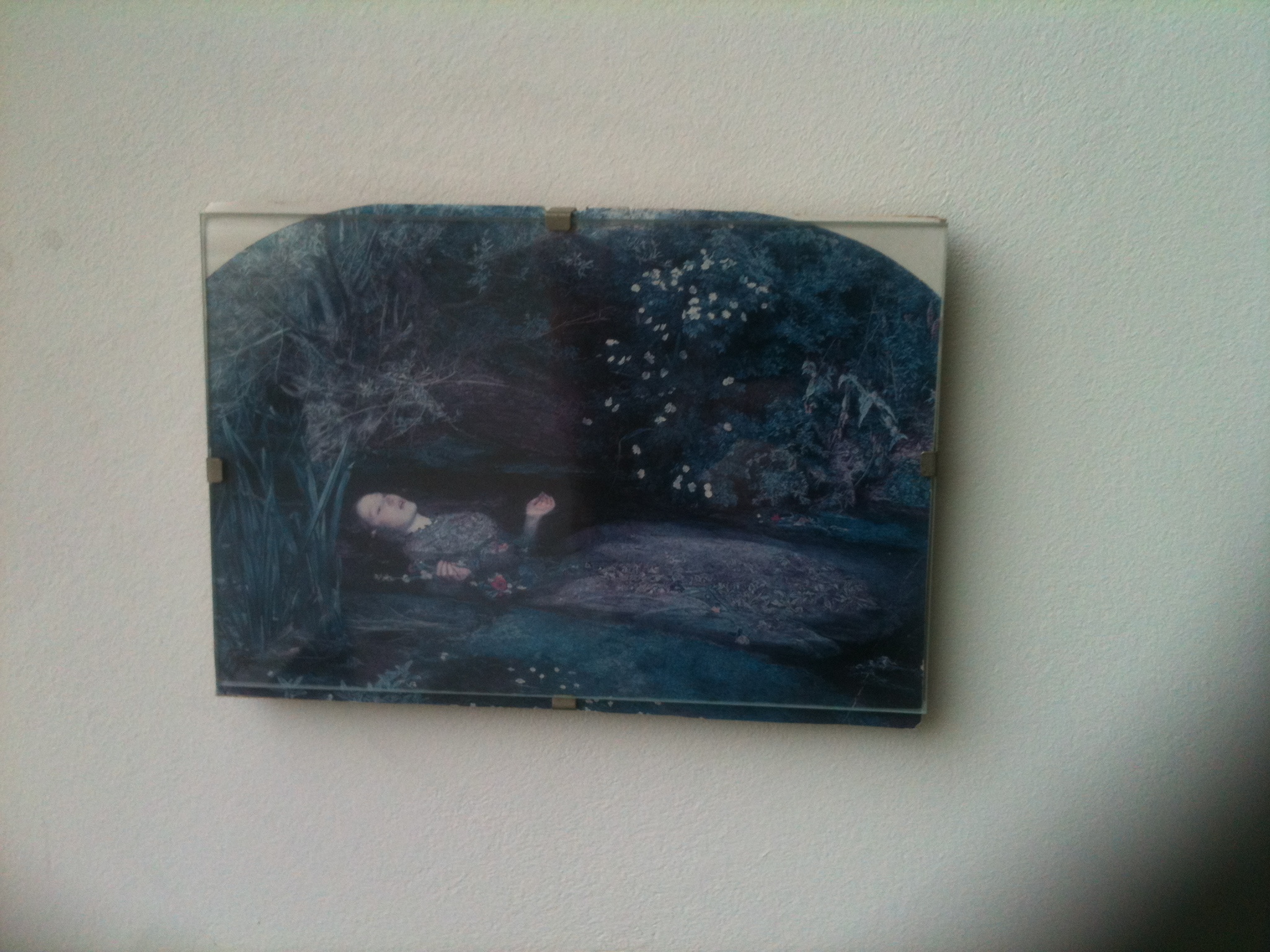 • Ich habe wenig Bilder in meinem Arbeitszimmer, weil das Zimmer nur Dachschrägen und vier Fenstergauben hat. Es hängen aber einige gerahmte Postkarten noch aus alten Studentenzeiten herum - HR Giger, die Ophelia von Millais, das völlig verblichene Portrait Thomas Morus' von Holbein etc -, sowie ein paar Fotos von guten Freunden. Außerdem stehen noch ein paar Dinge rum, wie z.B. ein dicker Buddha.