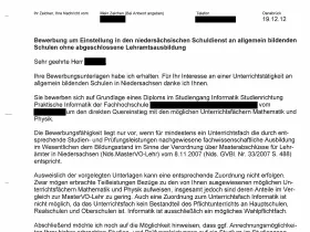 Ich bin 36, diplomierter Informatiker mit dem Abschluss Dipl.-Inf. (FH) und möchte gerne als Quereinsteiger in den niedersächsischen Schuldienst eintreten.