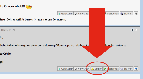 • Ah, danke. Ich bin hier zwar fast täglich als stiller Mitleser dabei, bin dabei aber selten angemeldet. Den Meldeknopf sieht man aber wohl nur als angemeldeter User.
