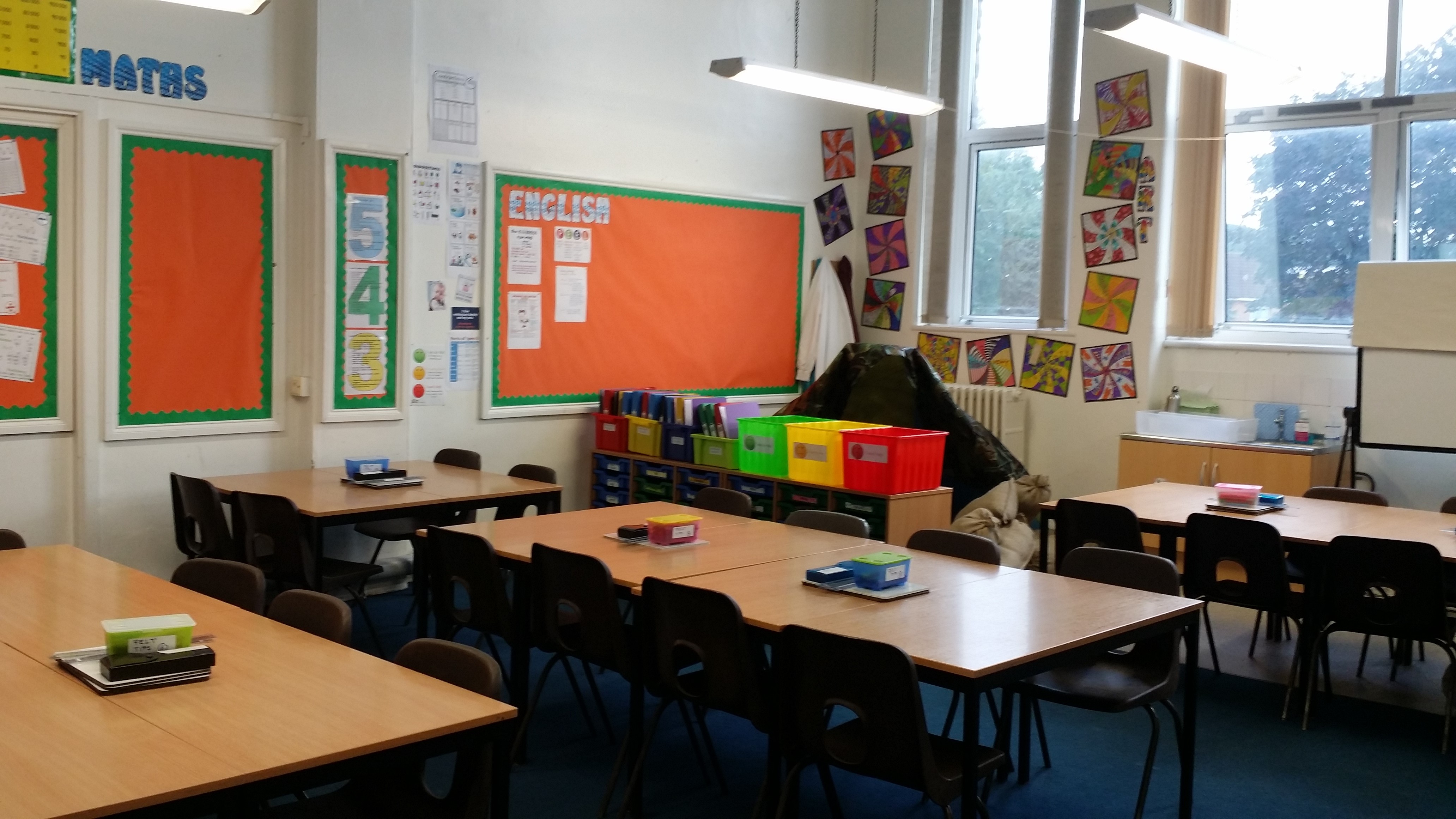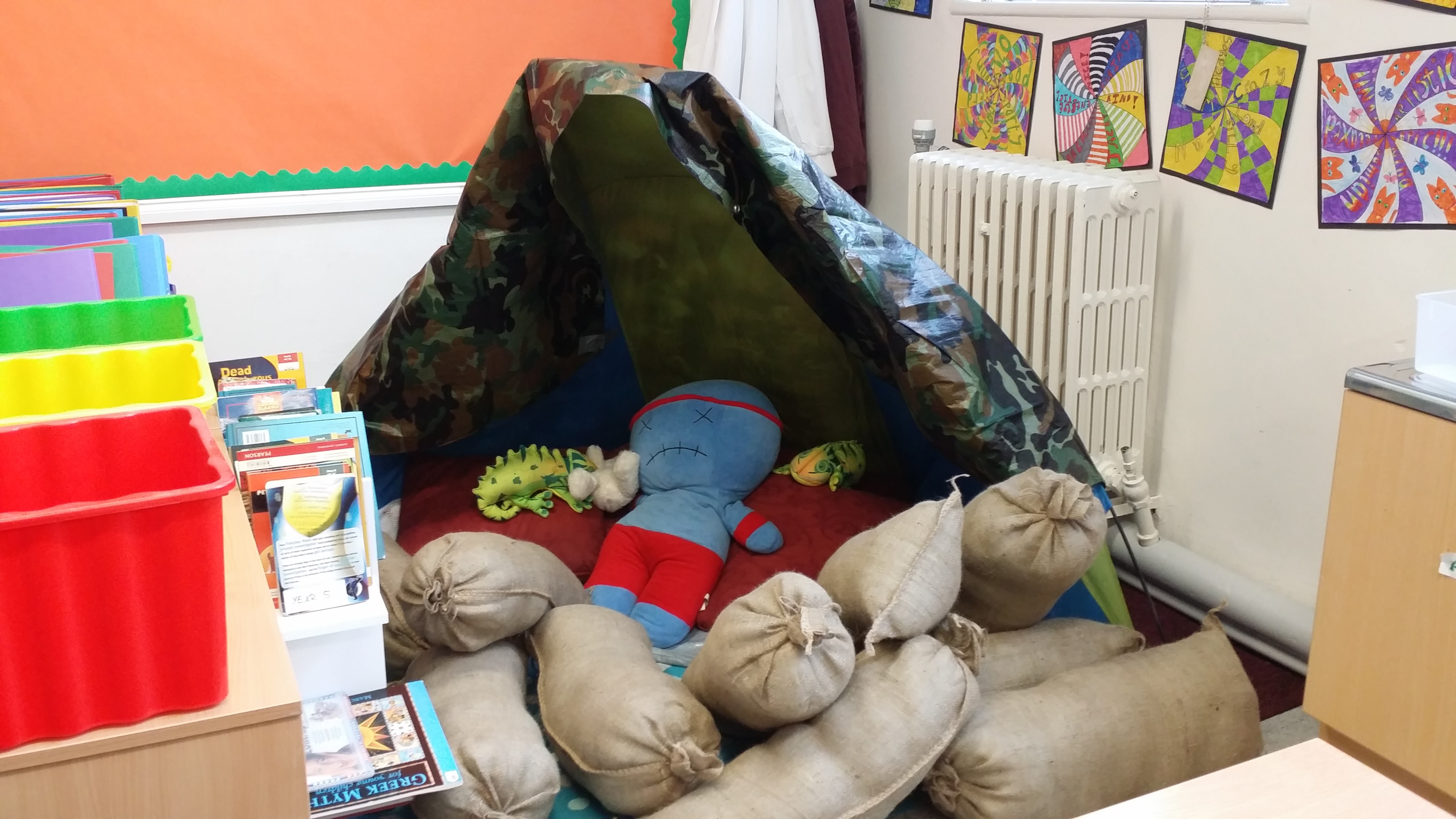 Die ersten zwei Tage waren ziemlich anstrengend. Gestern war etwas ruhiger. Meine Kids haben heute zum ersten Mal die Leseecke benutzt und wollten gar nicht mehr raus kommen. Nach einem Morgen mit Kunstunterricht und einem gesamten Nachmittag in der Turnhalle, in der wir "trench warfare" nachgestellt haben, bin ich nun ziemlich platt.