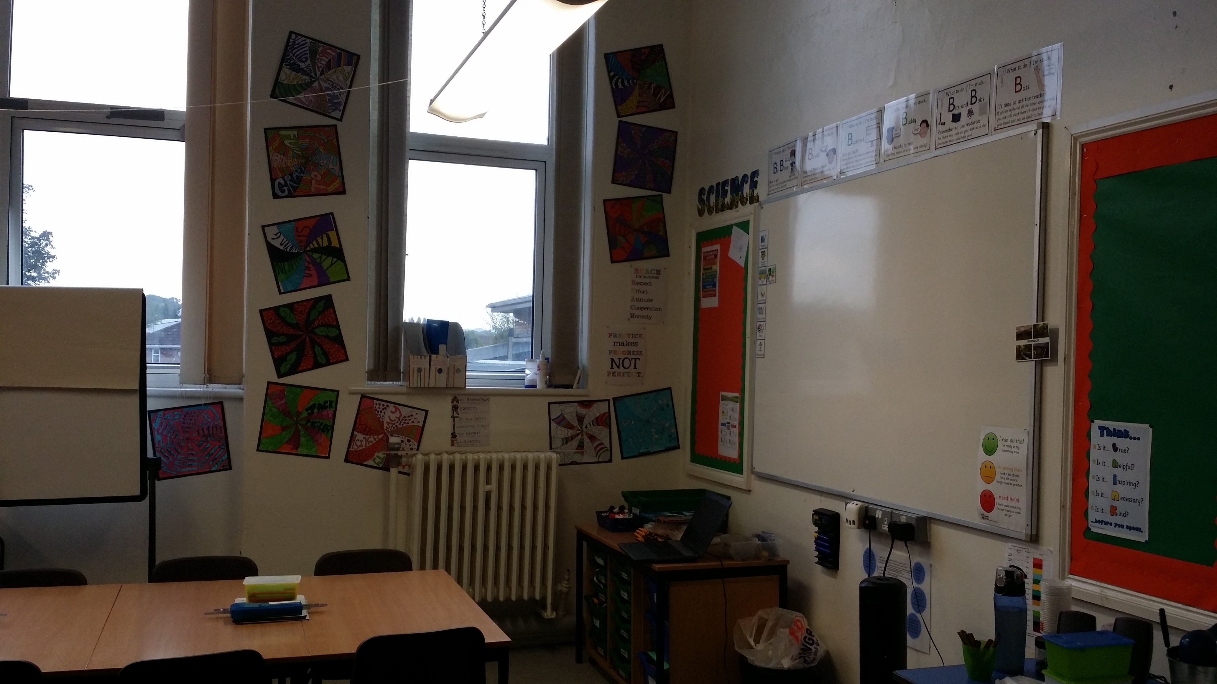 Normalerweise hab ich ungefaehr eine Woche um meinen Klassenraum fertig zu bekommen. Dieses Jahr hatten wir nur eineinhalb Tage. Noch nicht alles, wo es hin soll...aber mehrheitlich fertig. Morgen fangen wir wieder an.