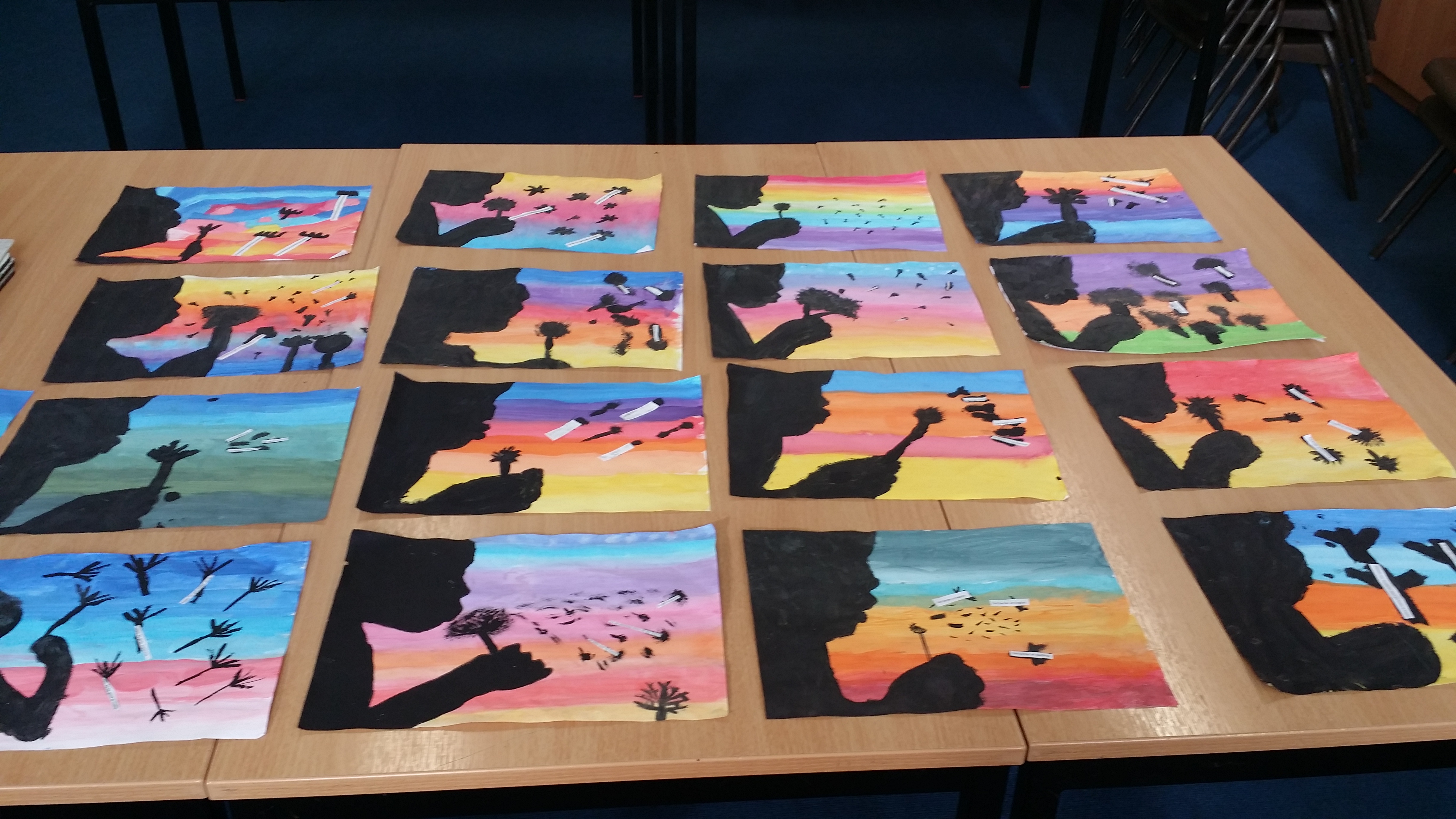 Unsere Kunstprojekte sind endlich fertig...obwohl einige noch draussen in der Halle trocknen mussten. Nachdem ich letztes Schuljahr kaum Kunst gemacht habe, ist es nun woechentlich eingeplant. Wir werden sehen, ob's was wird.