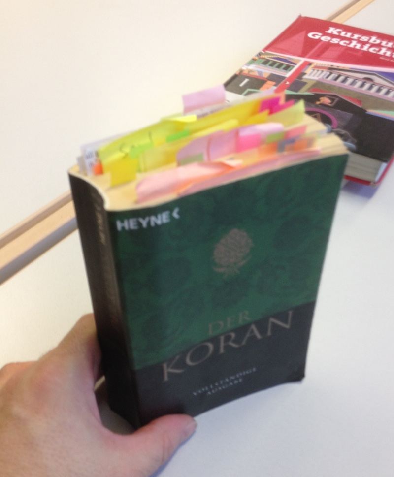 Just in case - mir ist schon oft genug vorgeworfen worden, dass ich die Texte, die ich anführe "in Wirklichkeit ja gar nicht gelesen" hätte, sondern mich auf "Google-Wissen" stütze. Das da unten ist mein Koran. Meine Bibel sieht genau so aus.