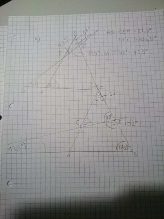 (a) Es wird ferner vorausgesetzt, daß Der Winkel EDA 42° groß ist. Wie groß sind dann die Winkel CEF und EFC !