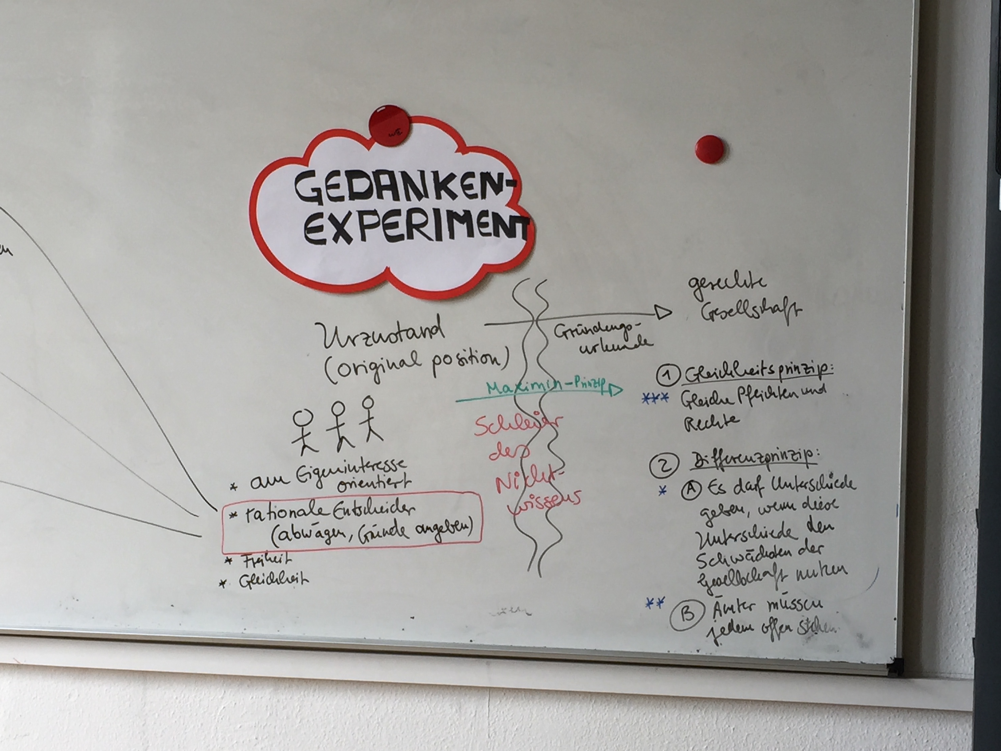 • Ich benutze kleine laminierte Schilder, buntes Papier und "Gedankenwölkchen" aus dem Moderationsbedarf, um meine Tafelbilder zu "pimpen". Generell habe ich den Eindruck: "weniger ist mehr", und der naive Charme meiner nicht besonders gelungenen Zeichnungen bringt Humors ins Gespräch.