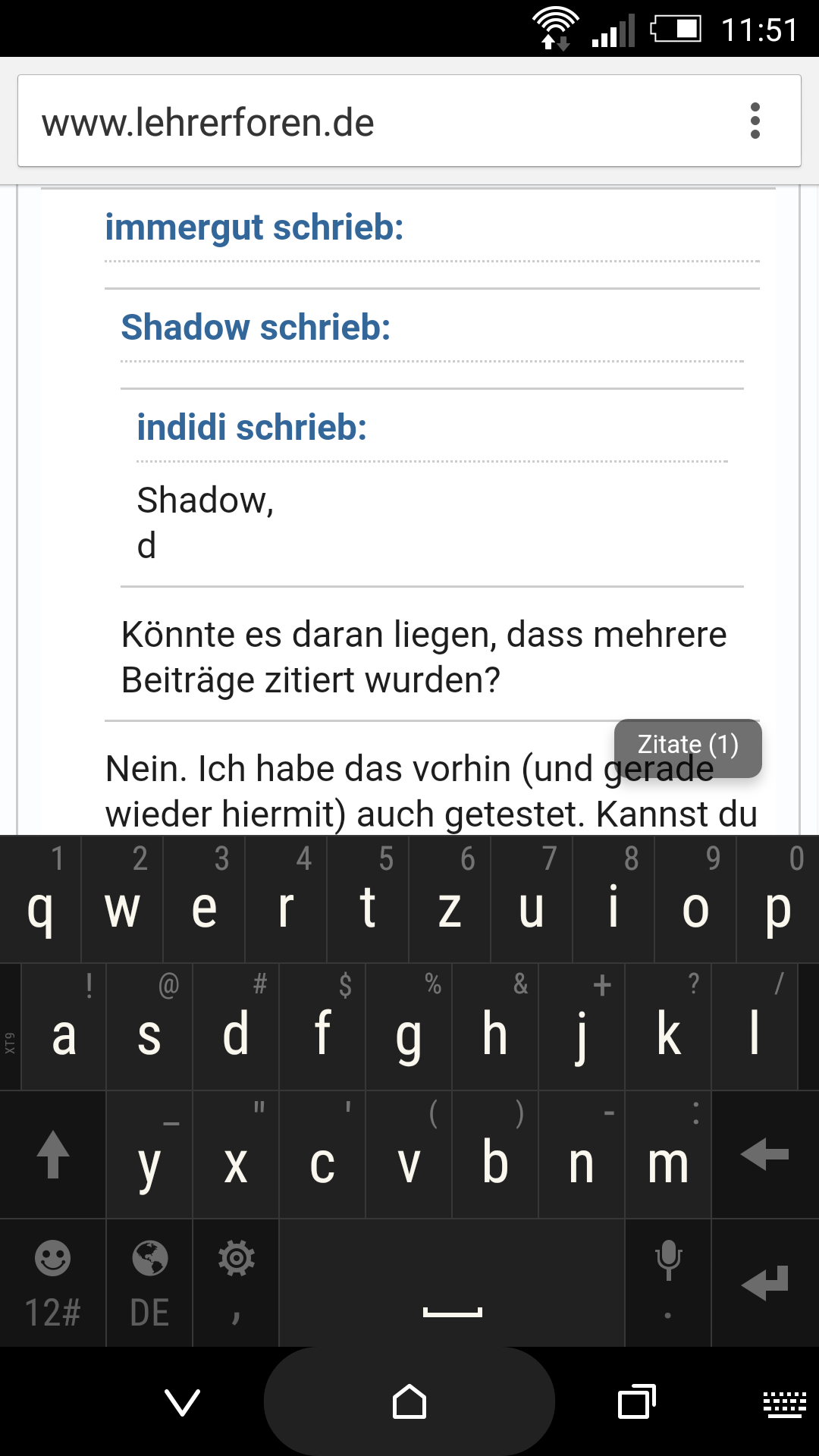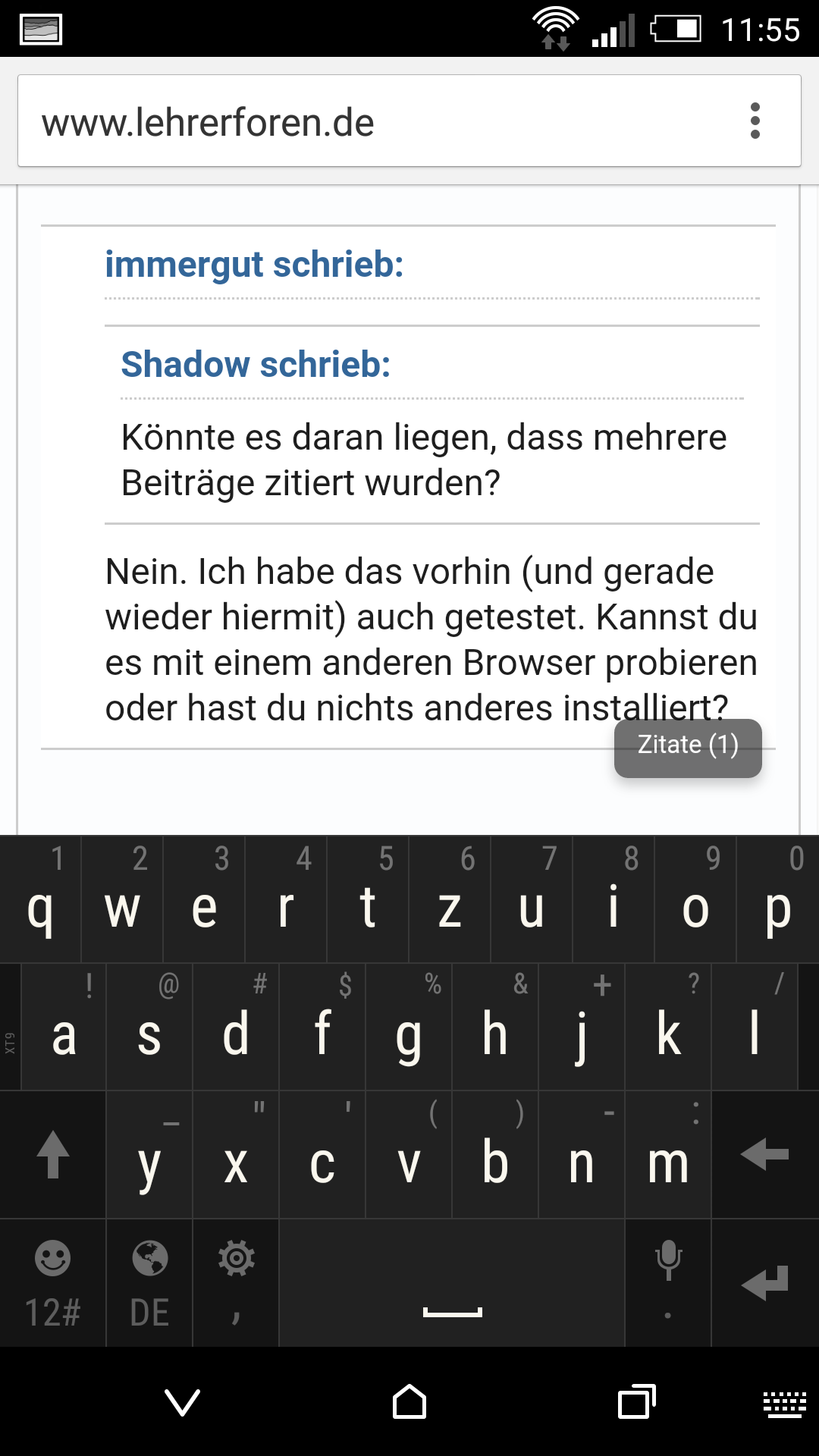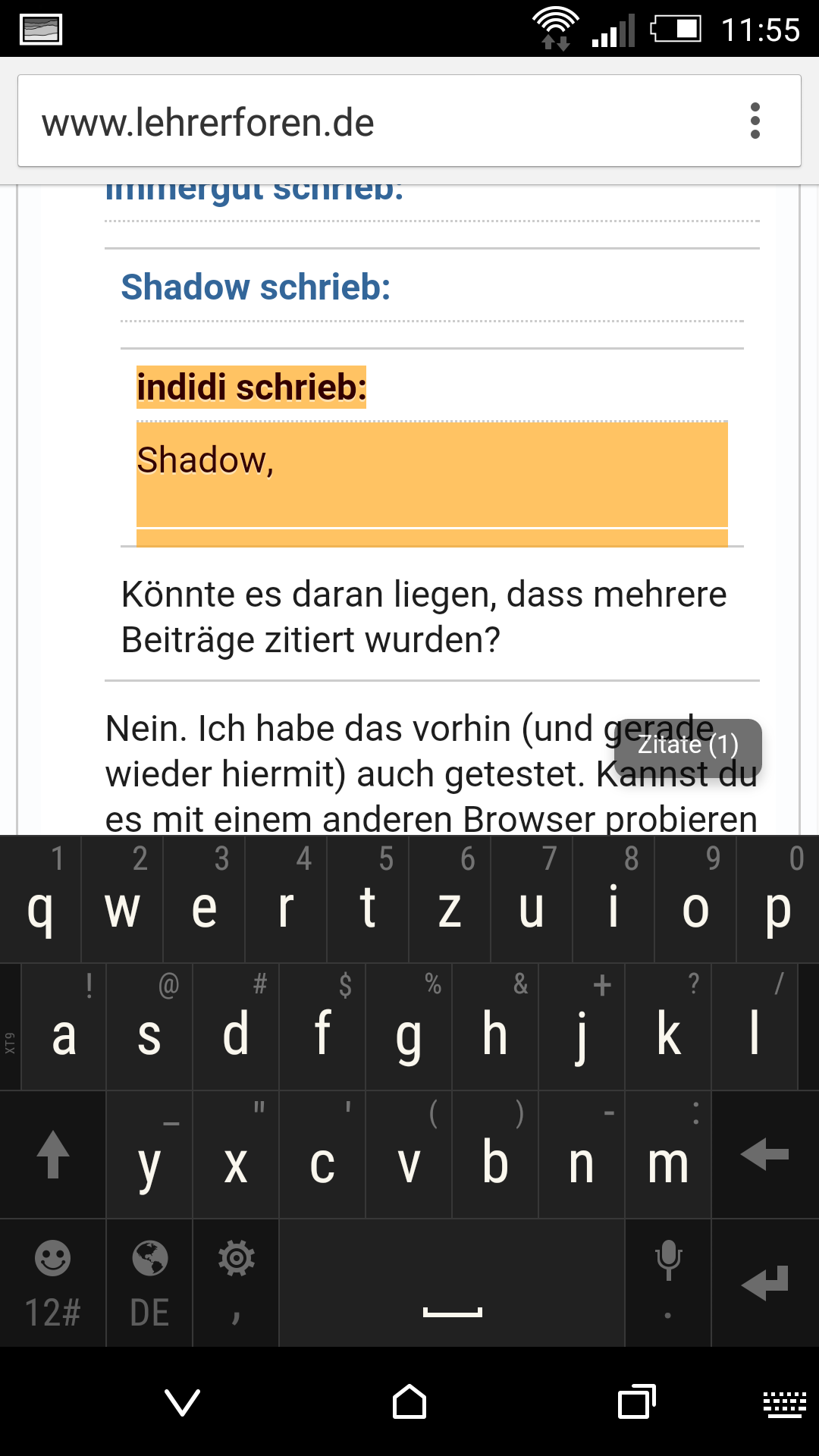 Ich habe es bis jetzt nicht geschafft, Beiträge zu zitieren. Drücke ich auf die Zitierfunktion lädt zwar die Zitierfunktion, aber hört nicht auf zu laden. Beim letzten mal habe ich es nach einer halben Stunde abgebrochen.