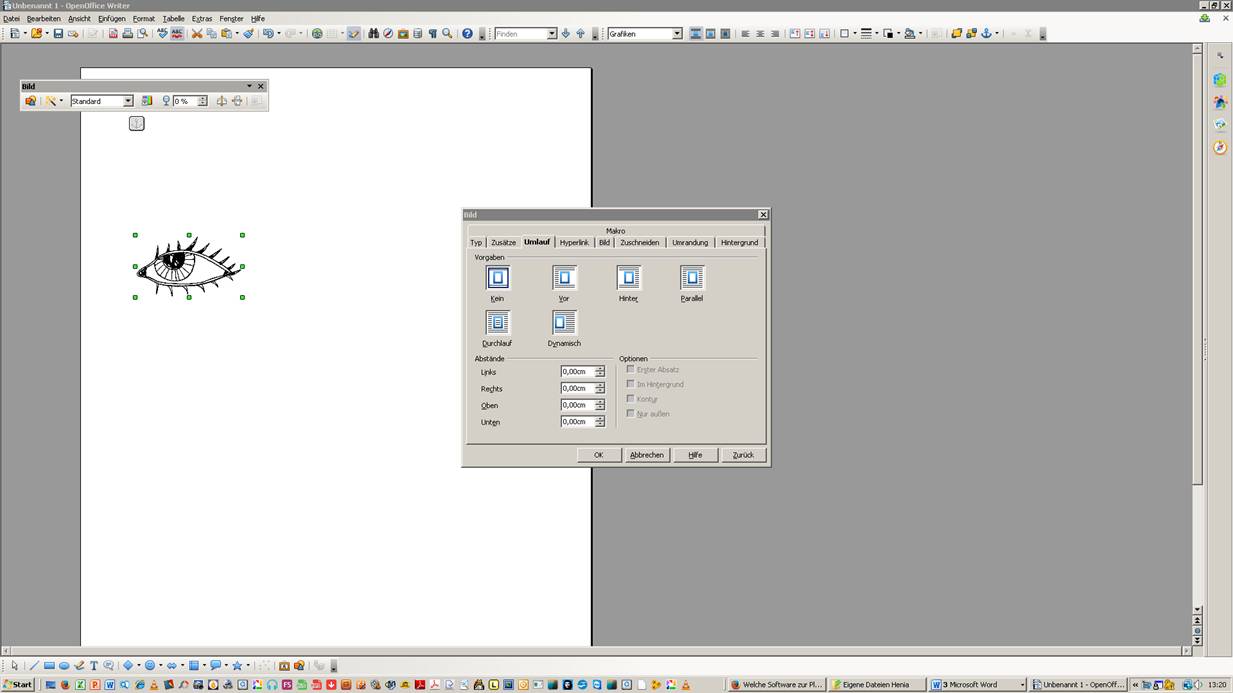Mit Open Office Textdokumentation gelingt mir das Verschieben der Grafiken nicht, auch mit Open Office Zeichnung und Work Crafter erscheint es mir sehr kompliziert und wenig zielsicher zwischen den unterschiedlichen Ebenen zu pendeln.