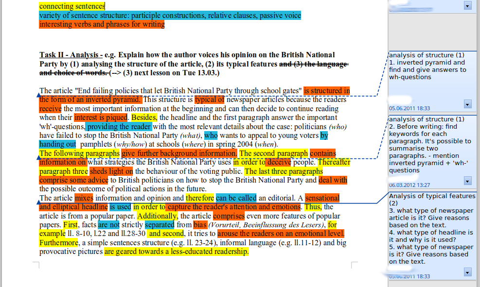 Aus den Klausuren picke ich auch immer Beispiel-Sätze heraus, korrigiere diese zusammen mit den Schülern und wiederhole dabei die Grammatikthemen.