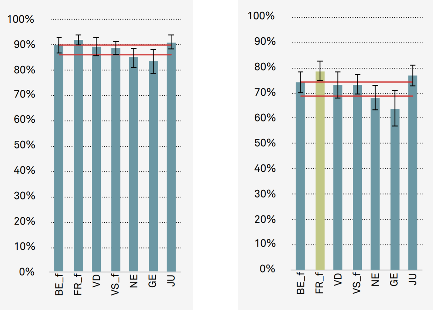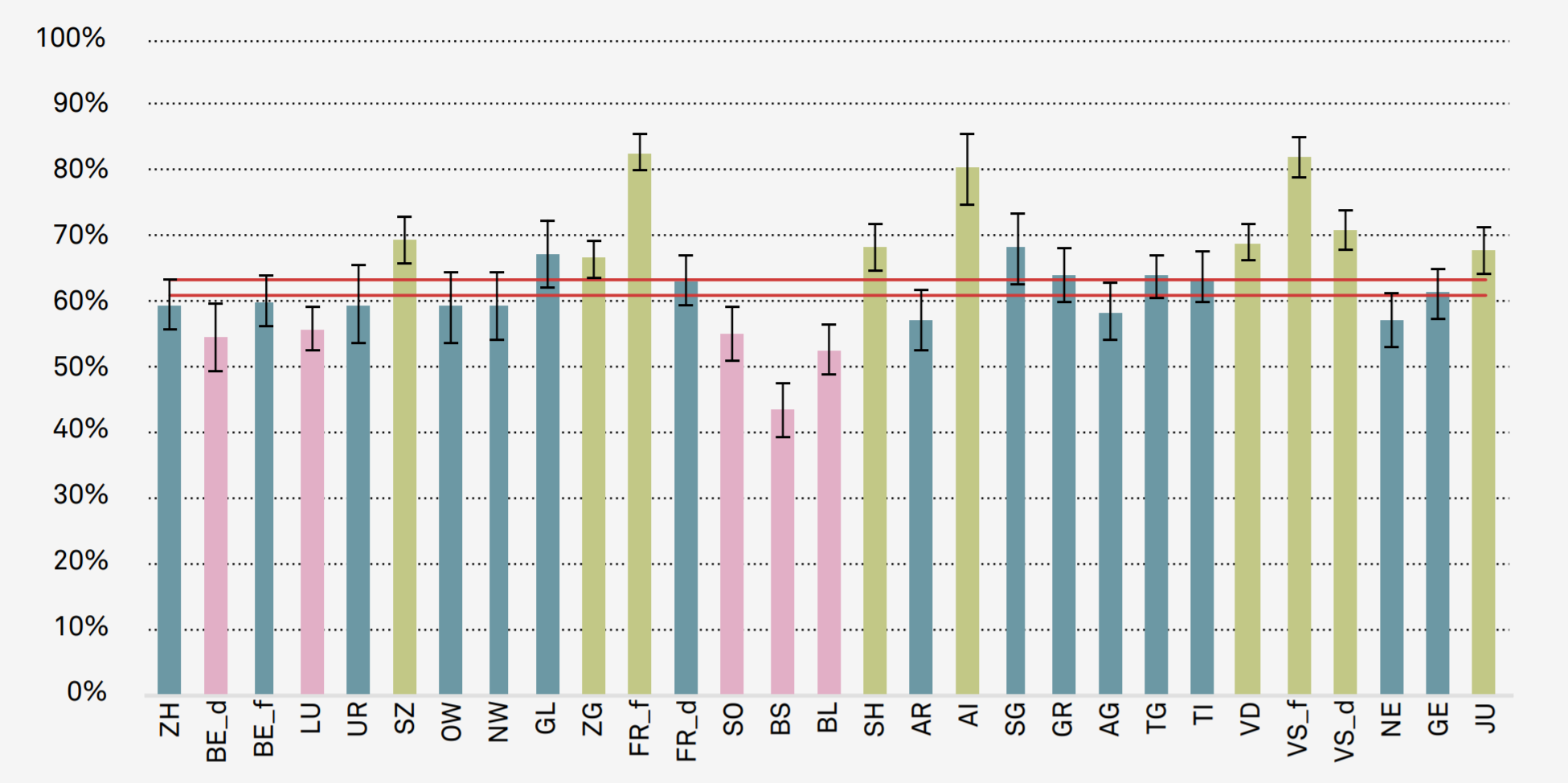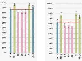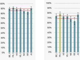 2. Hör- und Leseverständnis im Deutsch als erste Fremdsprache. Man beachte, dass der Kanton Tessin fehlt, die haben von allen romanischen Kantonen als einzige Französisch als erste Fremdsprache. Überprüft wurde hier auch am Ende der Primarstufe.![]()