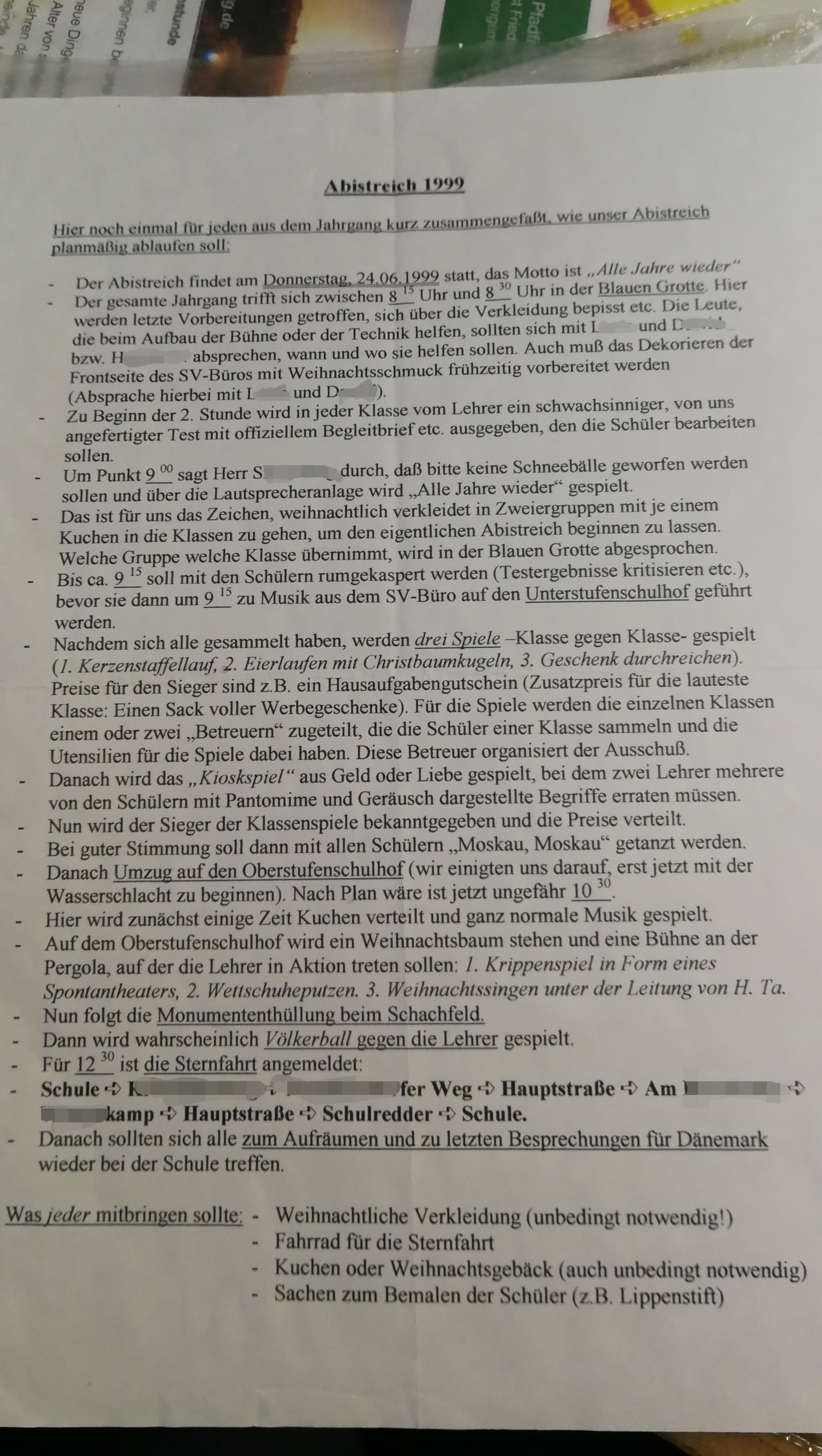 Ich räume gerade ein Regal auf, das ich offensichtlich seit Ewigkeiten nicht angetastet habe und finde unseren Ablaufplan von damals. Und wenn ich mich echt erinnere, war es uns auch gelungen, den einzuhalten.