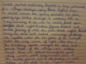 Als Vergleich mal der Text einer meiner ehemaligen Schueler. Waere hier Ende der 4. Klasse gewesen und so im Mittelfeld. Fuer mich waere das ungefaehr das Niveau, das ich erwarten wuerde. Was meine Schueler allerdings so auf Deutsch produzieren geht eher in die Richtung: