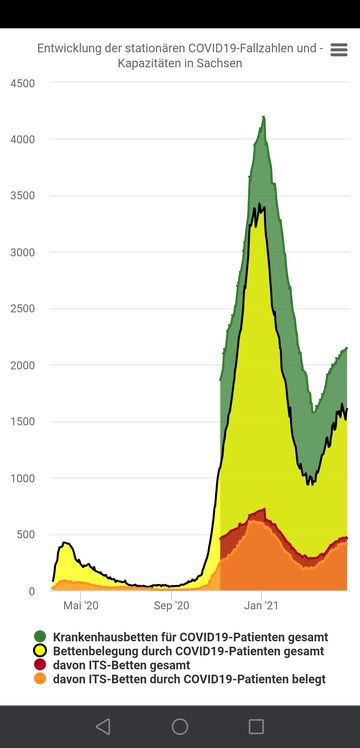 Also in Sachsen gab es eine Belegungsgrenze von 1300 Covid-Patient*innen auf Normalstationen, um rechtzeitig, vor Überfüllung der ITS-Stationen, gegensteuern zu können mit noch mehr Maßnahmen. Diese Grenze wurde für letzte Woche befürchtet, ist aber nicht erreicht worden. Die aktuelle Entwicklung ist offenbar nicht mit Weihnachten zu vergleichen und das ist doch echt mal ein Grund zum aufatmen.