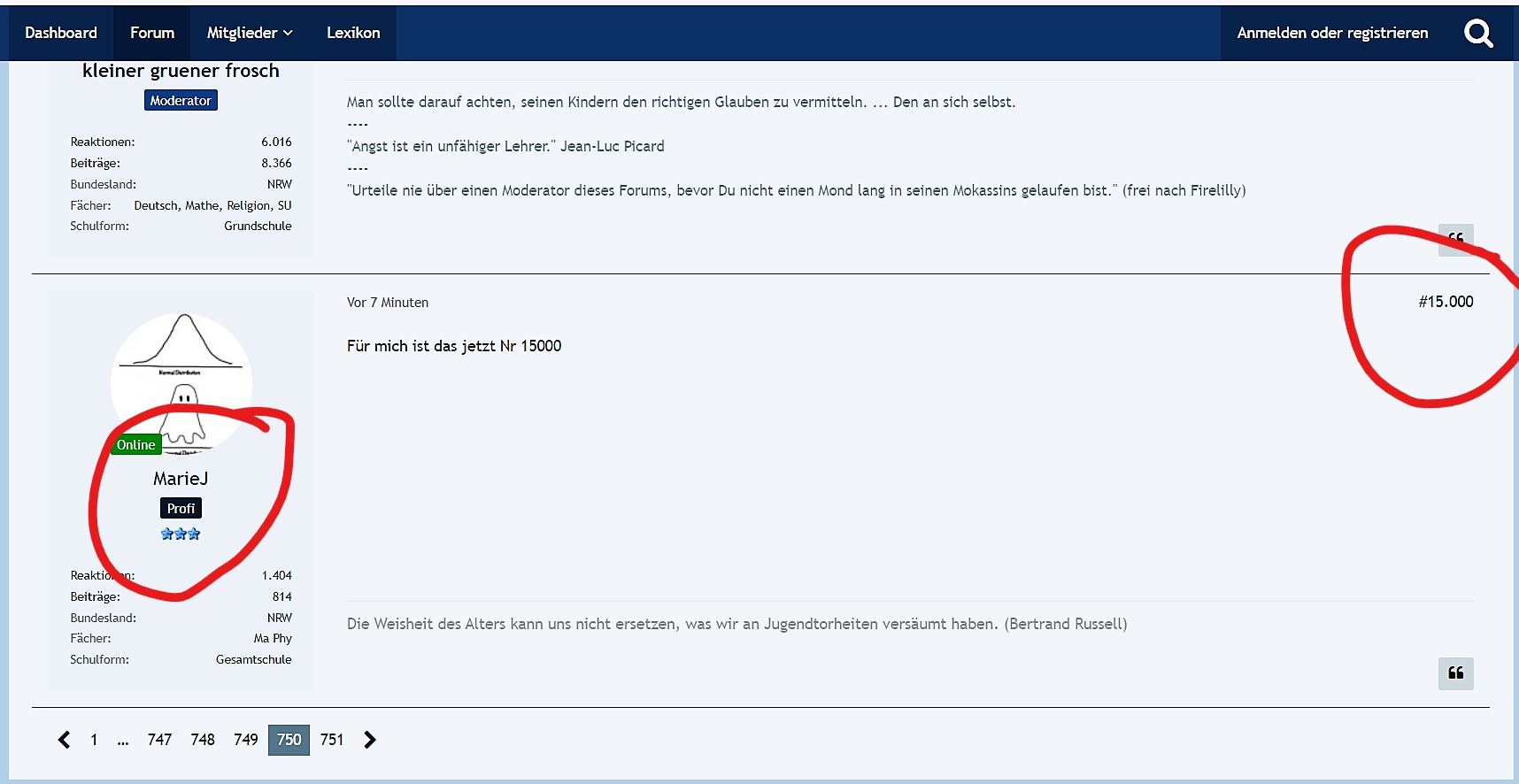 • Aaaah, stimmt, so war es. Es sind eben doch Beiträge die von Moderatoren gelöscht oder verschoben worden sind. Und stimmt, ich sah eben auch zwischen Kris und mir plötzlich 15001 und 15009, beim neu laden der Seite stimmte die Zählung dann wieder.