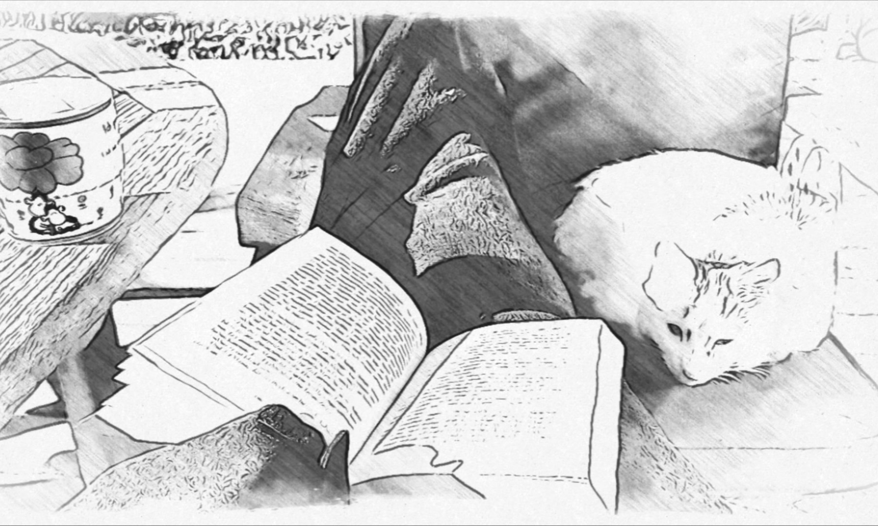 Sonne, Kaffee, Katze und Buch. So kann es jetzt weitergehen.