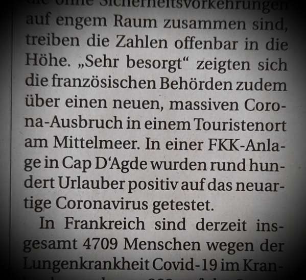 Nun, da bin ich mal gespannt, wie das in den Karnevalshochburgen ankommt, irgendwer hatte ja schon verlautbaren lassen, dass das Ausfallen der Karnevalsveranstaltungen auch wieder wirtschaftliche Folgen haben wird.