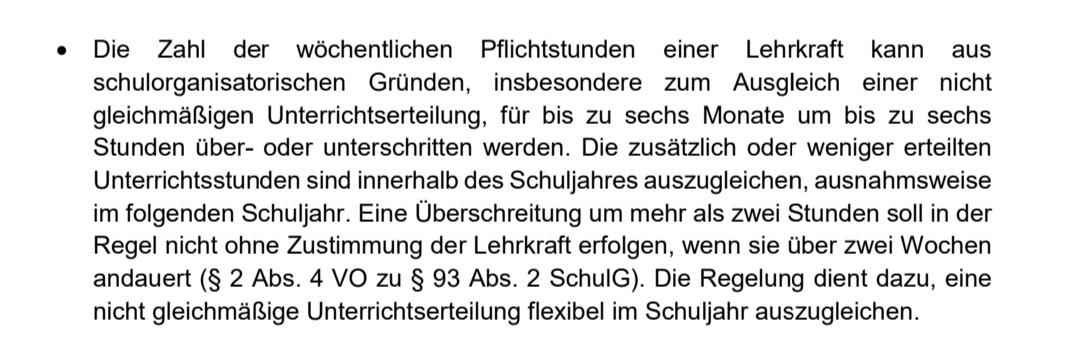 Zum Schutz der werdenden Mutter und des ungeborenen Kindes darf die schwangere Lehrerin insbesondere zur Mehrarbeit im Sinne von § 13 Abs. 5 ADO nicht mehr eingesetzt werden. Auch sonstige, längerfristige Pflichtstundenerhöhungen nach Maßgabe von § 13 Abs. 2 ADO oder im Rahmen eines Bandbreitenmodells sind zu vermeiden, es sei denn, dass sich die Lehrerin ausdrücklich schriftlich damit einverstanden erklärt