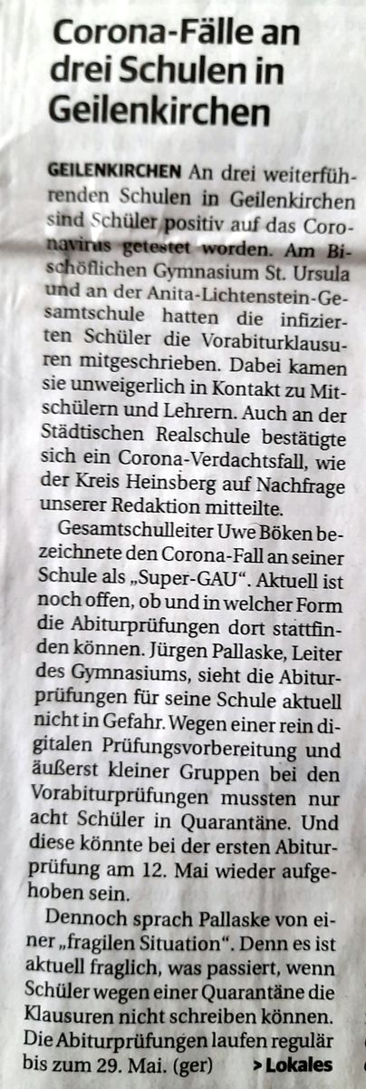 Der positive Fall in einer Kölner Realschule letzte Woche ging in der Presse auch unter