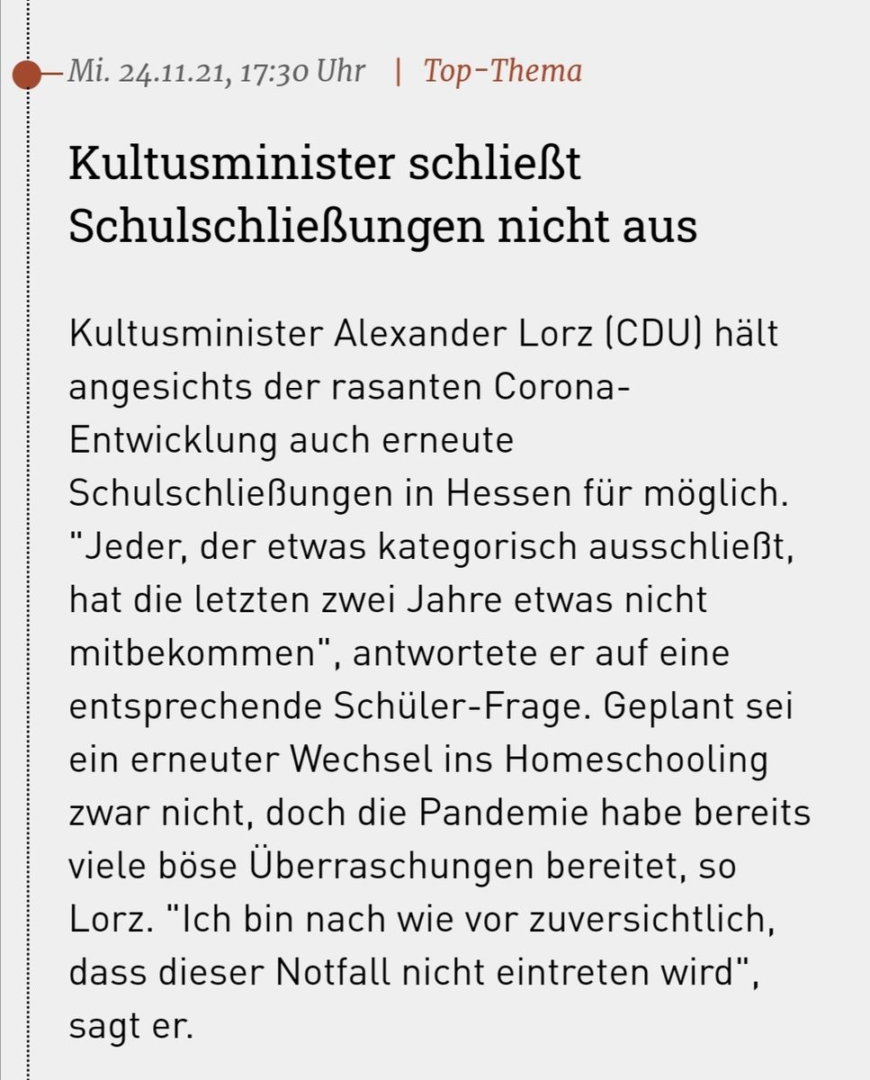 Eben gab es eine Pressekonferenz auf HR. Es wird keine vorgezogenen Weihnachtsferien in Hessen geben.