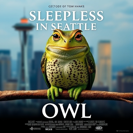 ZitatThe iconic film poster for ‘Sleepless in Seattle’, but instead with the new title ‘Sleepless in OWL’ and a green frog in Tom Hanks' place.
