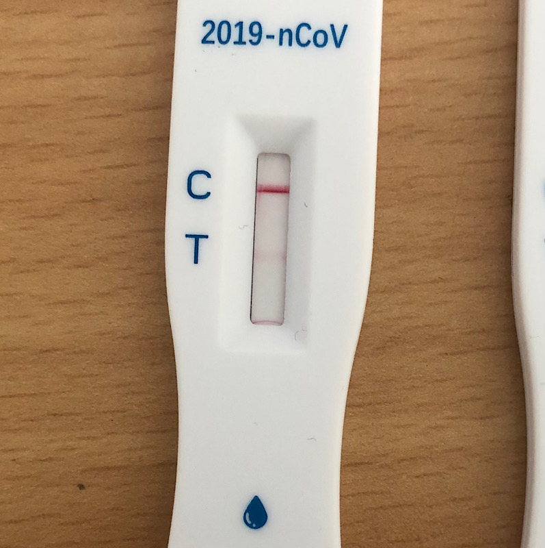 Gestern hatte ich dann leichtes Unwohlsein (Halskratzen, leichter Husten) und bin deshalb heute früh in der Schule zum Schnelltest gegangen (wird bei uns alle 14 Tage angeboten).