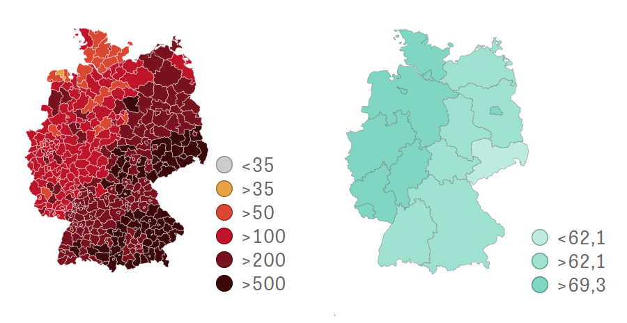 Ich finde das so super krass wie klar sich am Beispiel Deutschland zeigt, dass man über genau gar nichts anderes mehr als die Impfquote nachdenken muss. Vor nem Jahr ging es noch um wüste Spekulationen darüber, wo wie viele Leute wie dicht aufeinander wohnen, wie hoch der Migrantenanteil ist oder wo wie viele Schweine geschlachtet werden ... das spielt alles keine Rolle mehr, es geht nur noch um diese Impfung. Man kann sich da auch mal die Liste mit den Landkreisen anzeigen lassen und findet selbst grosse Städte wie Duisburg, mitten im Ruhrgebiet, ganz unten bei einer Inzidenz von nicht mal 100 während sich das Osterzgebirge mit Rottal-Inn bei weit über 1000 um einen traurigen Rekord nach dem anderen kloppt.