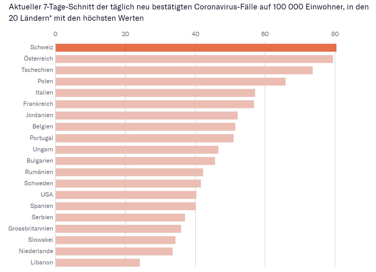 Dann verstehe ich nicht, was Du überhaupt mit der Frage wolltest. Ja, in der Schweiz sind die Infektionszahlen sehr hoch. Ja, es sterben Menschen an Covid. Nein, unser Gesundheitssystem ist nicht kollabiert, es werden alle Covid-Patienten behandelt, die dies auch wollen. Unser Gesundheitssystem ist sogar sehr gut, in Ländern mit vergleichbar hohen Infektionszahlen sterben erheblich mehr Leute an Covid.