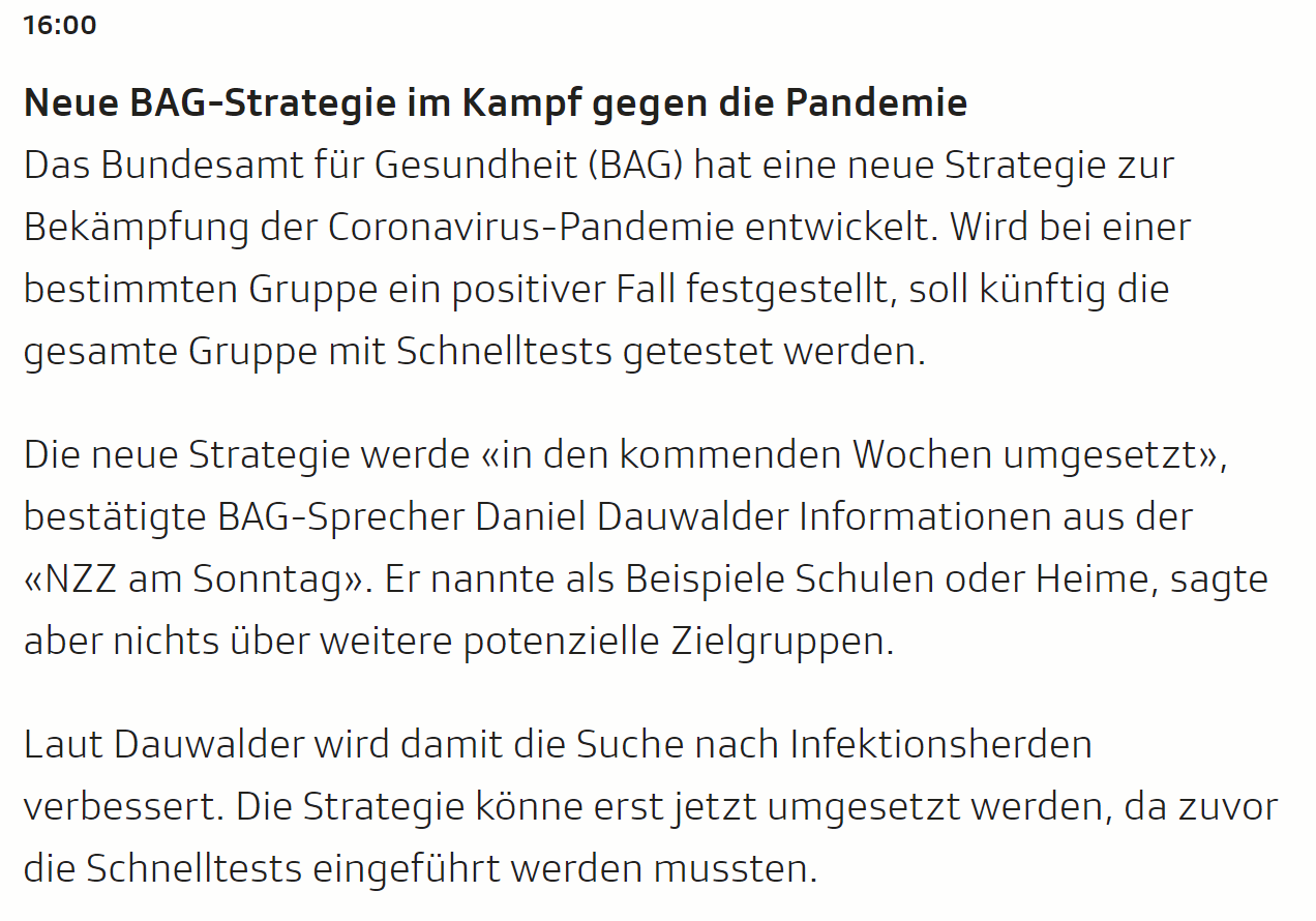 Hätten die mal mich gefragt, ich hab die Idee mit meinen Kollegen hier schon vor 4 Wochen diskutiert, gleich als die Schnelltests zugelassen wurden.