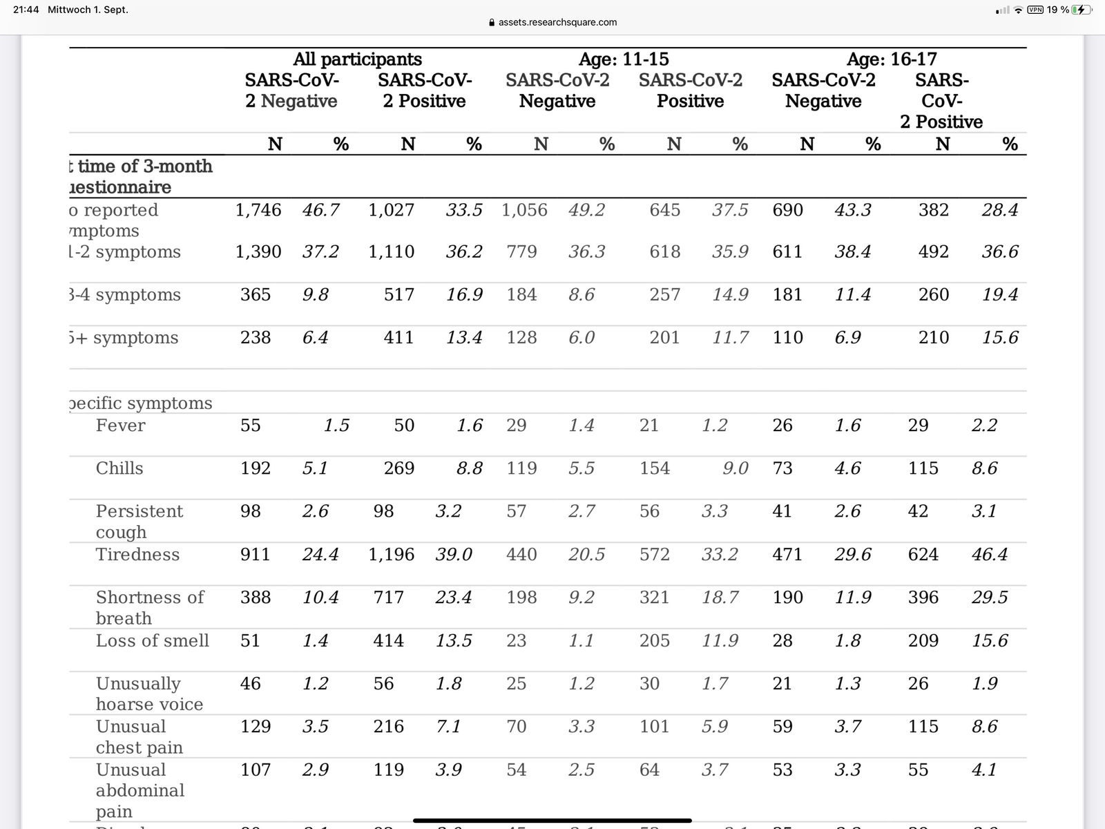 Fakt ist, dass Long Covid erst einmal nur eine längere Erholungsphase mit Residualymptomen ist. Davon spricht man grundsätzlich erst einmal, wenn Auswirkungen (z.B. Geschmacksverlust) nach 28 Tagen noch vorhanden sind. Das sind 1-3% (eher 1-2%), richtig. Bei einem großen Teil dieser Patienten verschwindet das aber spätestens nach 56 Tagen.