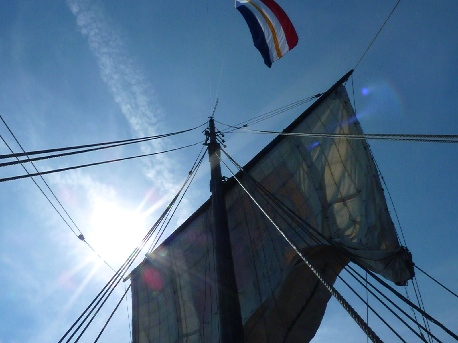 Sieht aus wie das Segel einer Hansekogge. Aber davon gibt es ja mehrere nachgebaute Exemplare.