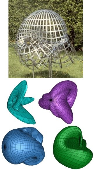 Das auf dem Bild rechts teilweise zu sehende Gebilde ist die Boysche Fläche, eine algebraische Fläche 6. Grades mit den Gleichungen