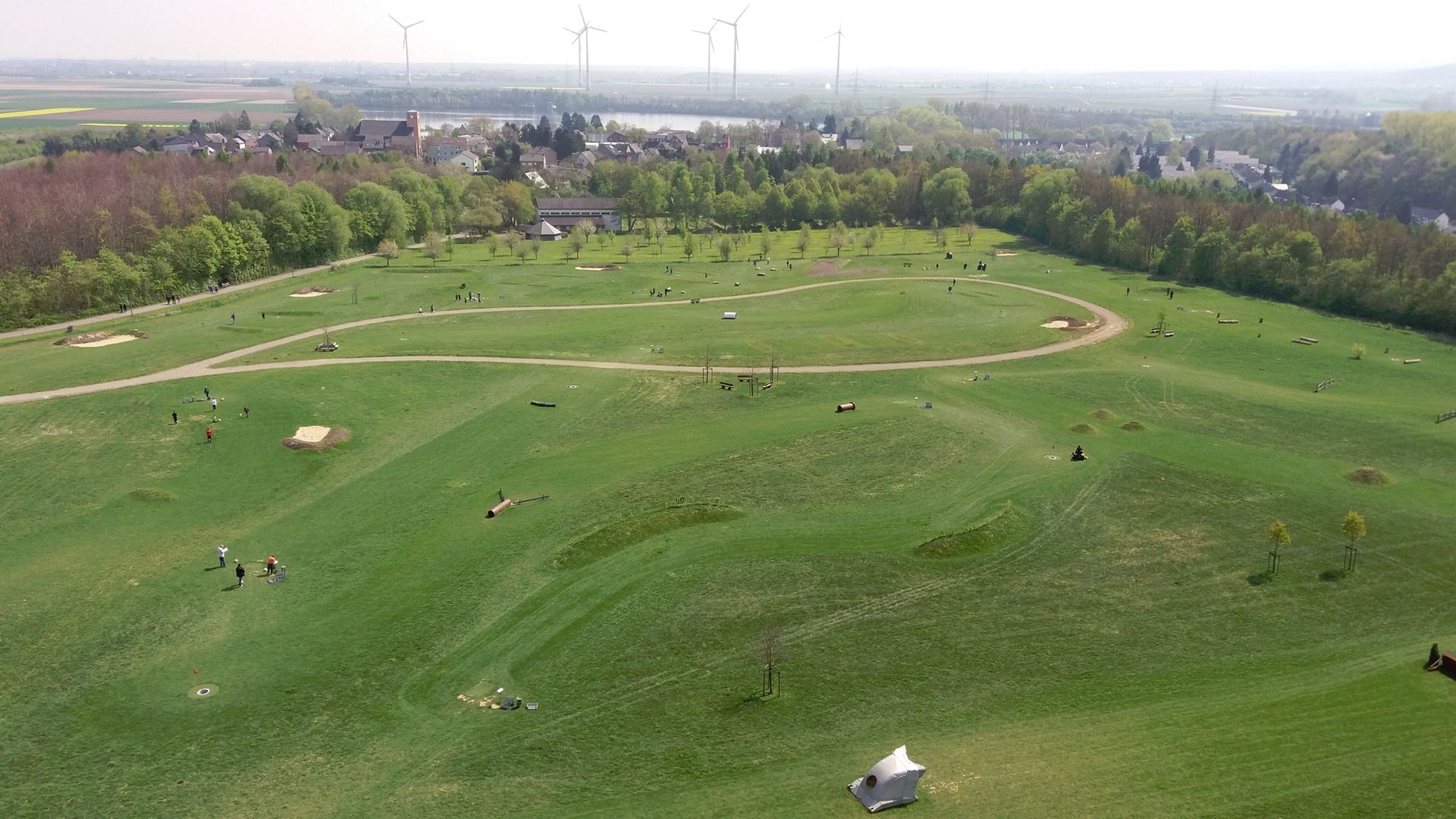 Aber der Frosch war ja auch auf dem richtigen Weg. Der Ort des ganzen: Lucherberg bei Inden (Kreis Düren), Braunkohleregion. Der Aussichtsturm, von dem aus das Bild entstand, heißt Indemann. Die Windräder stehen schon auf der anderen Seite der A4 zwischen Aachen und Köln.