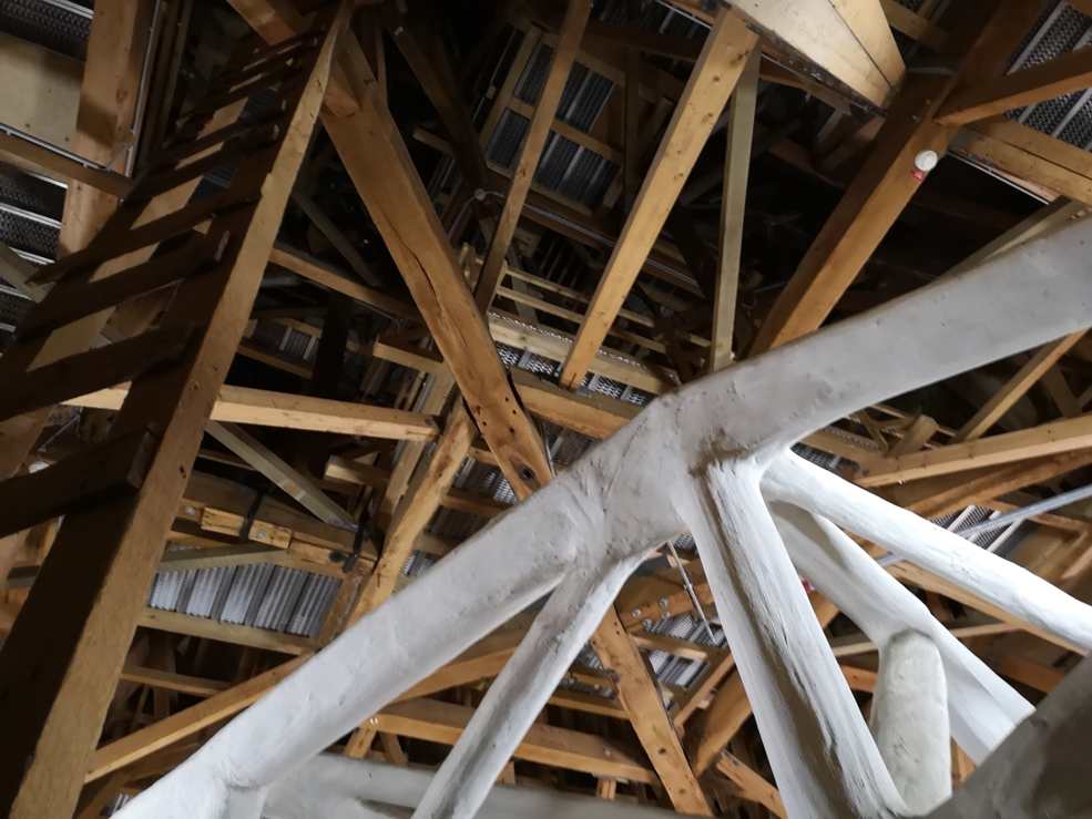 Mich wundert diese helle Konstruktion in der unteren Bildhälfte etwas, das passt nicht zum "normalen" Dachgebälk. Spielt das eine besondere Rolle?