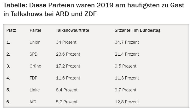 Nur darum geht es nicht, sondern darum, die Mehrheitsverhältnisse im Parlament (wo die AfD immerhin die größte Oppositionspartei ist) zu berücksichtigen. Der ÖRR befindet sich hier in einer ganz anderen Situation als die Privaten (wobei ich dort seltamerweise keine so starke Eindimensionalität beobachte) und er hat, da er sich aus Beiträgen aller Bürgerinnen und Bürger finanziert, in meinen Augen die Pflicht, die parlamentatischen Mehrheitsverhältnisse zu berücksichtigen.