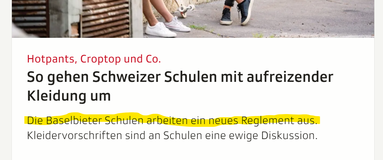 Äh nein ... tun wir nicht, wir haben Besseres zu tun. Und eine "Kontroverse" gab es ganz sicher auch nicht, Sekundarschule Muttenz, das wüsste ich. Der BH-Skandal aus Fribourg, ja der hat vor allem die Medien eine Weile beschäftigt. So häufig wie aber irgendein offensichtlicher Müll im Zusammenhang mit Schule geschrieben wird, wage ich zu bezweifeln, dass das wirklich so spektakulär war, wie dargestellt. Ich frage mich, woher die eigentlich ihre Informationen nehmen bzw. warum diese durch Rückfrage nicht überprüft werden.