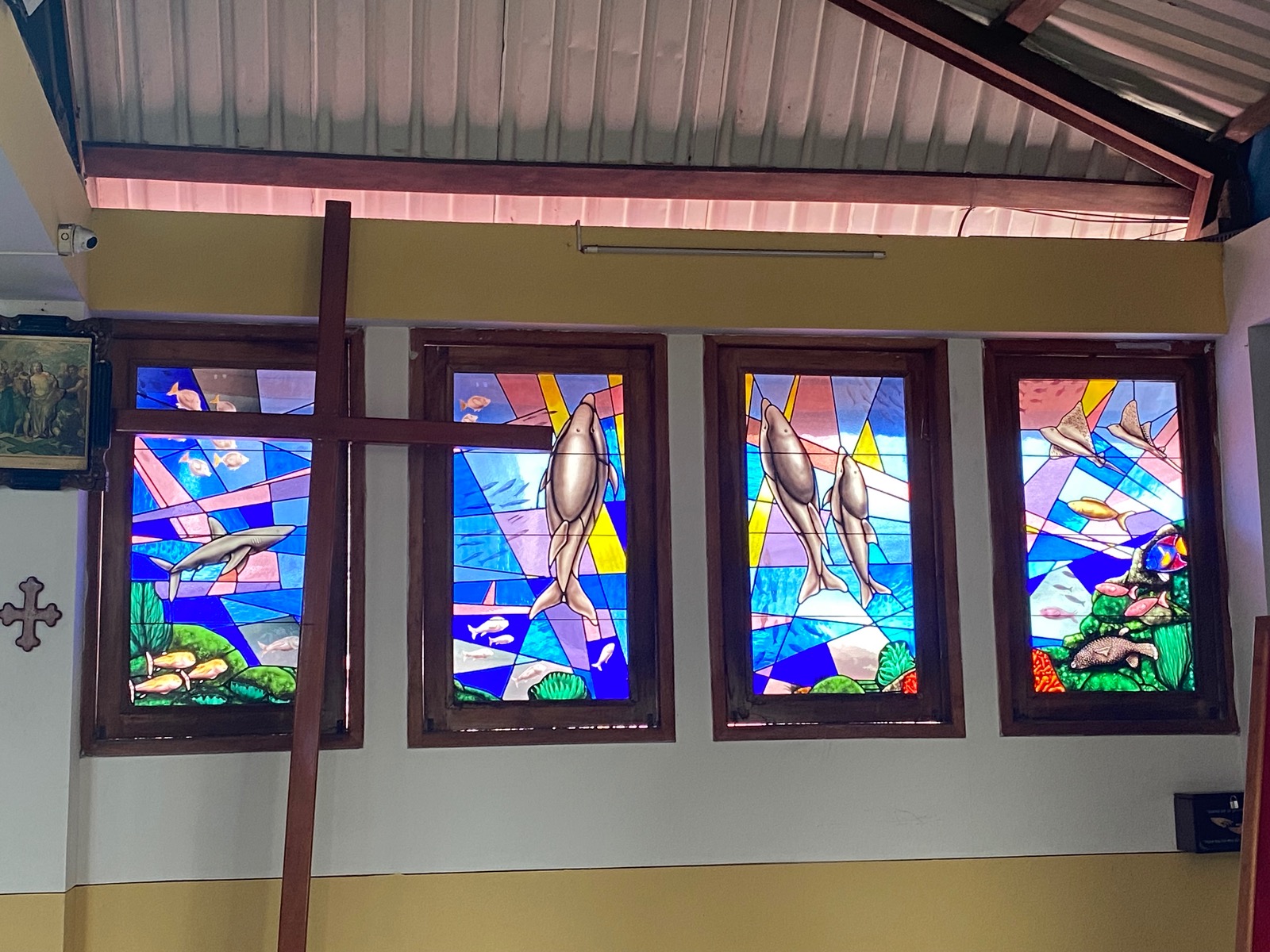 Mal gucken, ob ihr rauskriegt, wo diese doch eher ungewöhnlichen Kirchenfenster hängen.