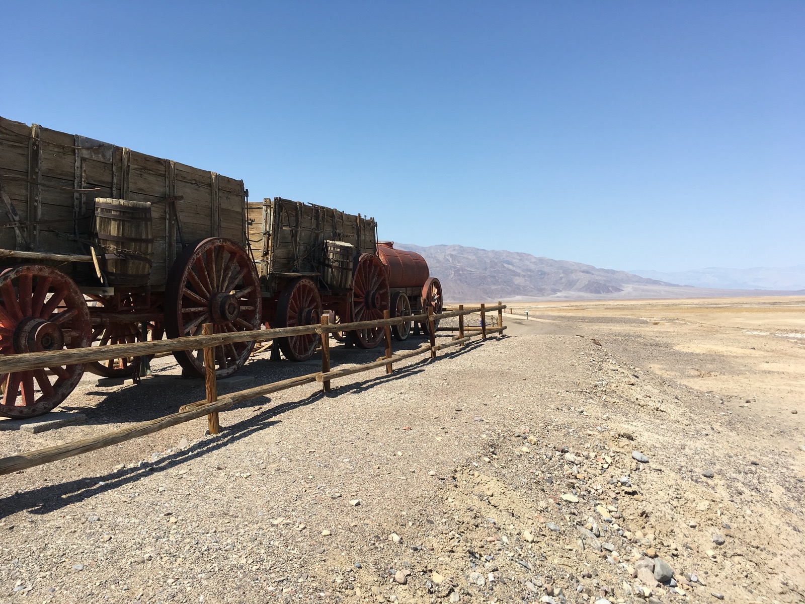 Dein erstes Bild - die wüste Wüste ©Websheriff - könnte im "Tal des Todes" entstanden sein, ist ja in der Nähe (für amerikanische Verhältnisse) von Las Vegas. Ob da so ein paar Pferdewagen stehen? Im alten Film Zabriskie Point nicht, so weit ich mich erinnere. Da gab's nur Nackedeis im Wüstenstaub.