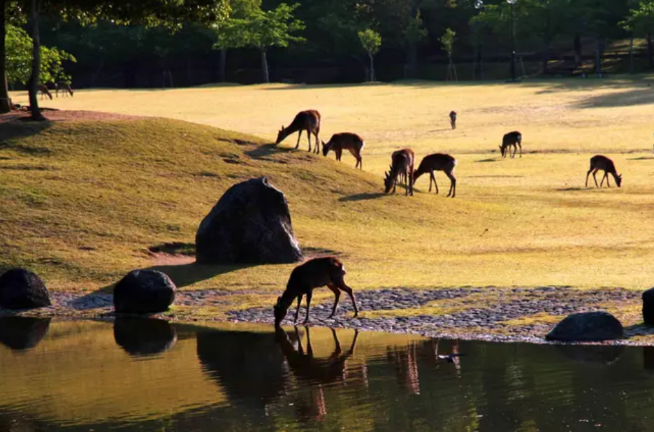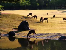 Ein Nationalpark mit heiligen Rehen und Hirschen in Japan.