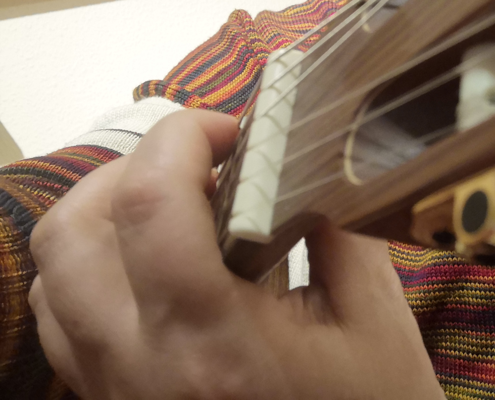 Bei der Ortega bin ich an die Seiten im Grunde nur noch durch fast flach auflegen der Finger dran gekommen. Ich vermute, dass ich hier mit den Fingern nur schwer den erforderlichen "senkrecht-von-oben-drauf"-Winkel erreichen würde. Allerdings hat die Ortega am Korpus diese Abschrägung am Korpus (Armlehne, Armrest). Die fand ich extrem angenehm. Der Korpus schmiegte sich förmlich in meine Körperproportionen ![]()