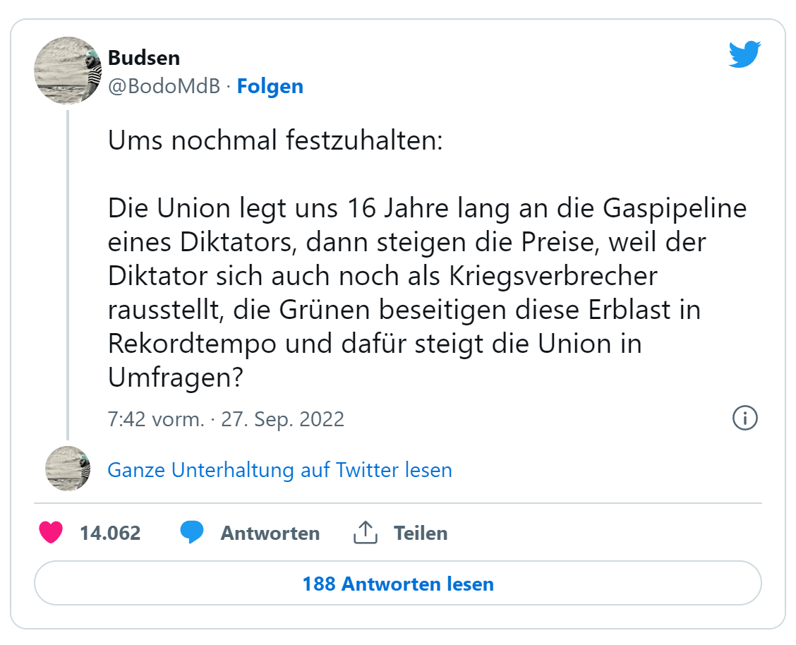 Zu den Gaspreisen off-topic, dass sich meiner auf 400 Euro verdoppelt hat. Und das ist mit Sicherheit nicht das Ende der Fahnenstange.