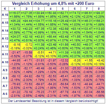 Ideallösung wäre gewesen, beides so zu kombinieren, dass für alle im ersten Schritt entweder ein bestimmter Sockelbetrag oder ein bestimmter Prozentsatz herauskommt. In Hessen stehen die unteren Besoldungsgruppen schlechter dar und hier die höheren.