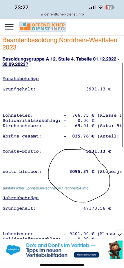 Ich habe momentan Knapp 4000€Netto raus, PKV schon abgezogen und bin noch nicht allzu lange Beamte auf lebenszeit. Allerdings Steuerklasse 3. Ich bin mehr als zufrieden damit, was mich aber nicht davon abhält, den jährlichen Widerspruch raus zu schicken. Durch diese Mietstufengeschichte fühle ich mich nämlich auch bisschen veräppelt als kinderlose und ganz ehrlich - wenn ich geldmäßig irgendwie noch mehr rausholen kann, dann mache ich das auch bzw. versuche es. Ich bzw. wir alle hier gehen schließlich unserer Erwerbstätigkeit nach und betreiben das “Lehrer-sein” nicht aus mildtätigkeit als Ehrenamt. Also ja, mir gefällt der Betrag, der monatlich auf meinem Konto landet aber ich halte gerne trotzdem die Hand auf, wenn’s was zu holen gibt ![]()
