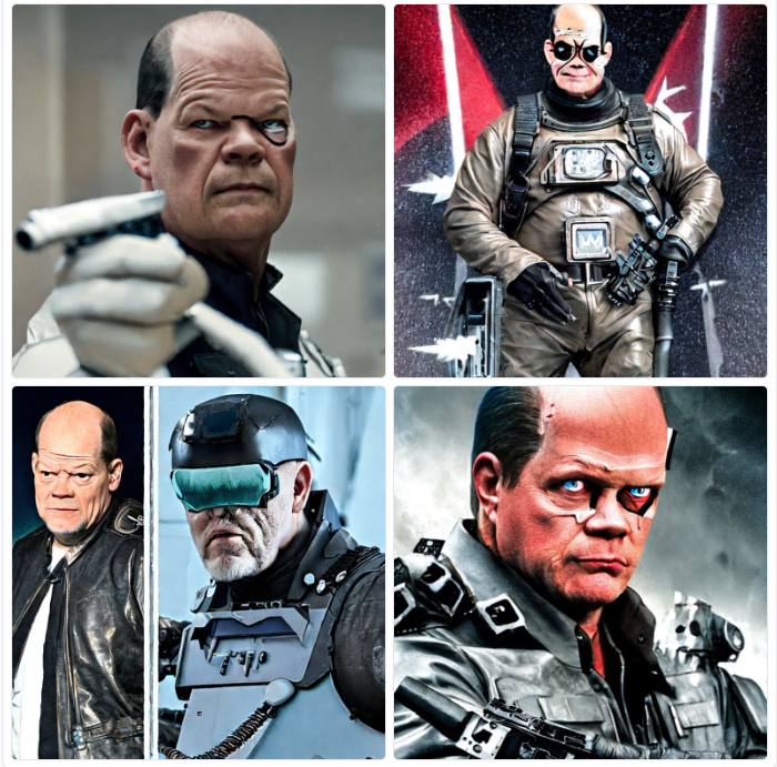 hier Olaf Scholz als Terminator: